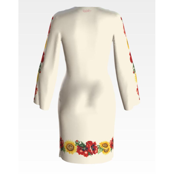 Заготовка для вишивки жіночої сукні Маки і соняхи призначена для часткової зашивки бісером або нитками. Схема надрукована на домотканому полотні бежевого кольору екологічно чистими стійкими фарбами, що не змиваються після прання. Відрізи розкроєні з урахуванням необхідних запасів для зручного вишивання та подальшого пошиття виробу.