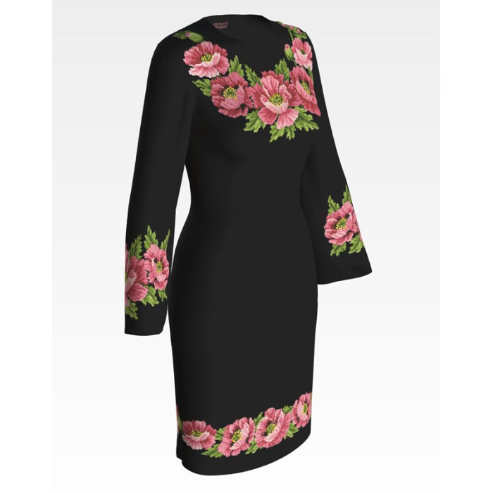 ПЛ042шЧнннн Барвиста вишиванка Заготовка для вишивки - Сукня жіноча Маки рожеві р.42-54 шовк, чорний