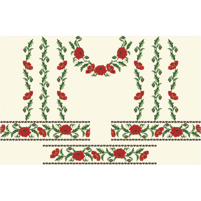 Заготовка для вишивки жіночої сукні Тендітні маки призначена для часткової зашивки бісером або нитками. Схема надрукована на домотканому полотні бежевого кольору екологічно чистими стійкими фарбами, що не змиваються після прання. Відрізи розкроєні з урахуванням необхідних запасів для зручного вишивання та подальшого пошиття виробу.
