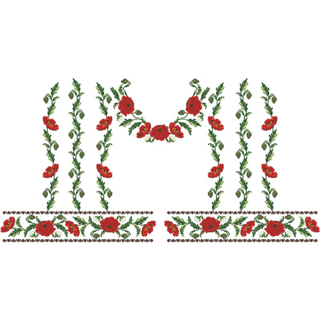 Заготовка для вишивки жіночої сукні Тендітні маки призначена для часткової зашивки бісером або нитками. Схема надрукована на білому габардині екологічно чистими стійкими фарбами, що не змиваються після прання. Відрізи розкроєні з урахуванням необхідних запасів для зручного вишивання та подальшого пошиття виробу.