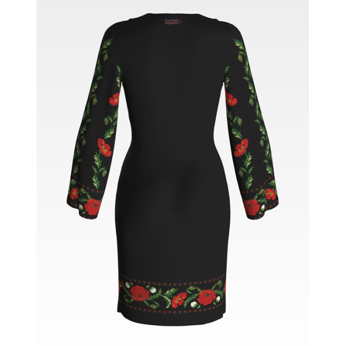ПЛ050шЧнннн Барвиста вишиванка Заготовка для вишивки - Сукня жіноча Тендітні маки р.42-54 шовк, чорний