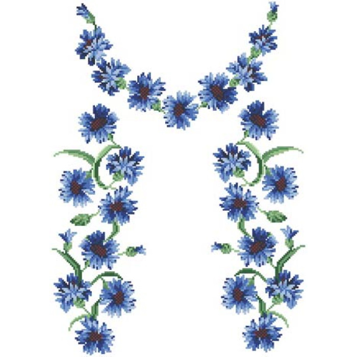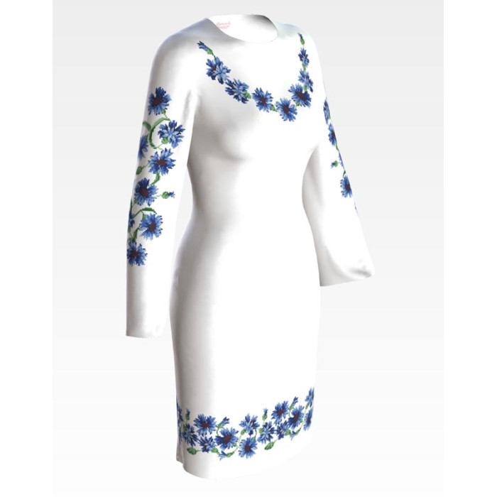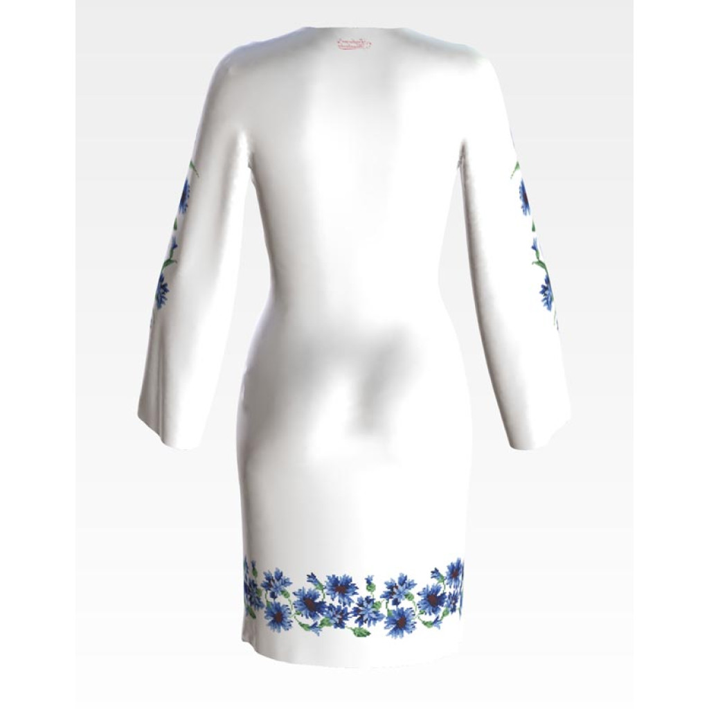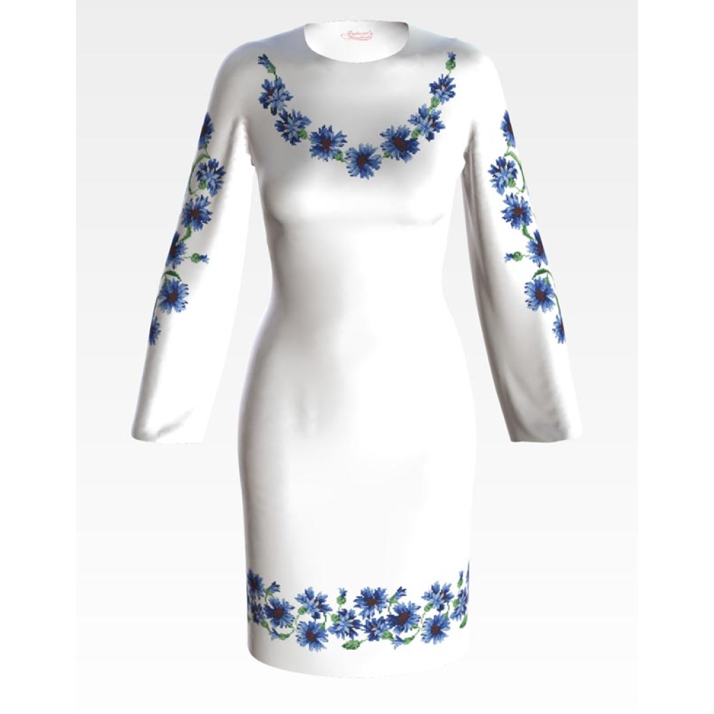 Заготовка для вишивки жіночої сукні Волошки призначена для часткової зашивки бісером або нитками. Схема надрукована на білому габардині екологічно чистими стійкими фарбами, що не змиваються після прання. Відрізи розкроєні з урахуванням необхідних запасів для зручного вишивання та подальшого пошиття виробу.