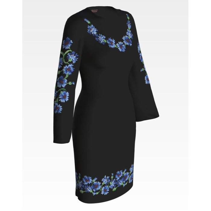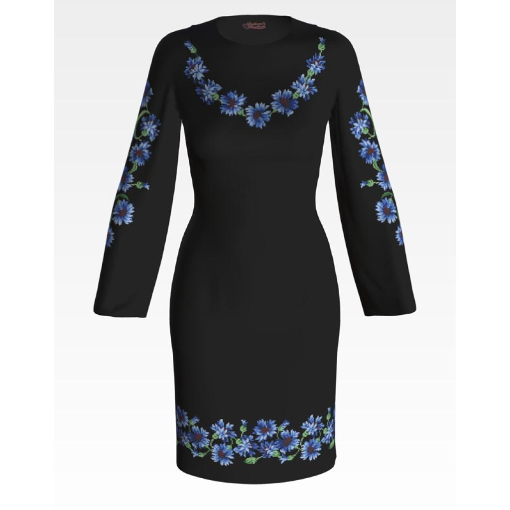 ПЛ051шЧнннн Барвиста вишиванка Заготовка для вишивки - Сукня жіноча Волошки р.42-54 шовк, чорний