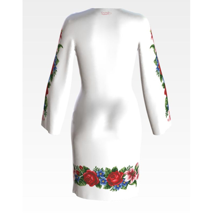 ПЛ055лБнннн Барвиста вишиванка Заготовка для вишивки - Сукня жіноча Лілеї, троянди, незабудки р.42-54 льон, білий