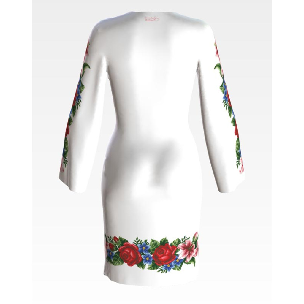 ПЛ055пБнннн Барвиста вишиванка Заготовка для вишивки - Сукня жіноча Лілеї, троянди, незабудки р.42-54 габардин, білий