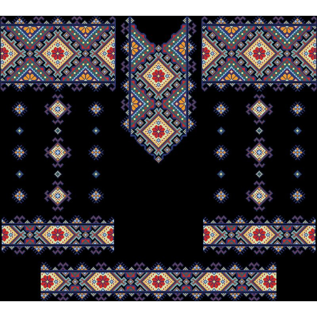 Заготовка для вишивки жіночої сукні Ніжний орнамент призначена для часткової зашивки бісером або нитками. Схема надрукована на шовковій тканині чорного кольору екологічно чистими стійкими фарбами, що не змиваються після прання. Відрізи розкроєні з урахуванням запасів для зручного вишивання та подальшого пошиття виробу.