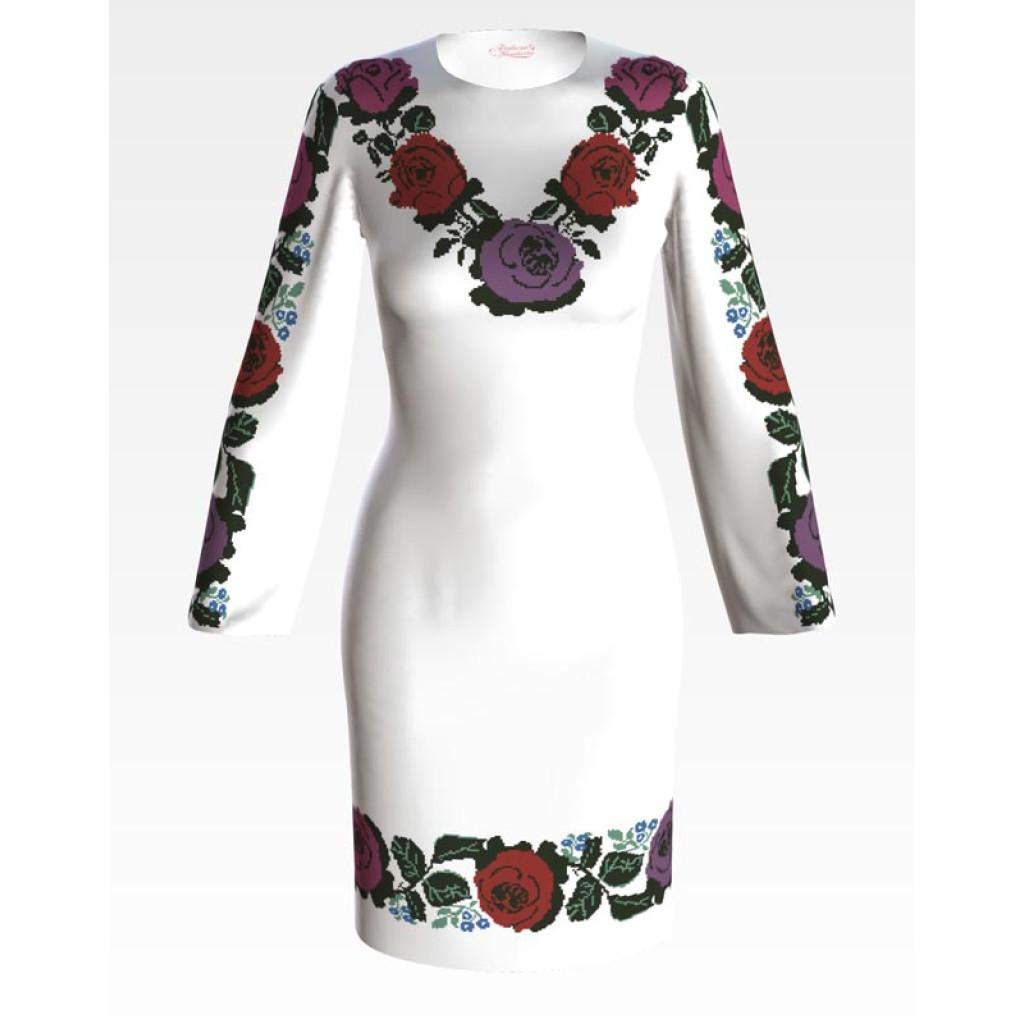 ПЛ061лБнннн Барвиста вишиванка Заготовка для вишивки - Сукня жіноча Борщівська. Троянди р.42-54 льон, білий