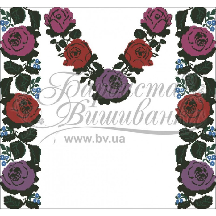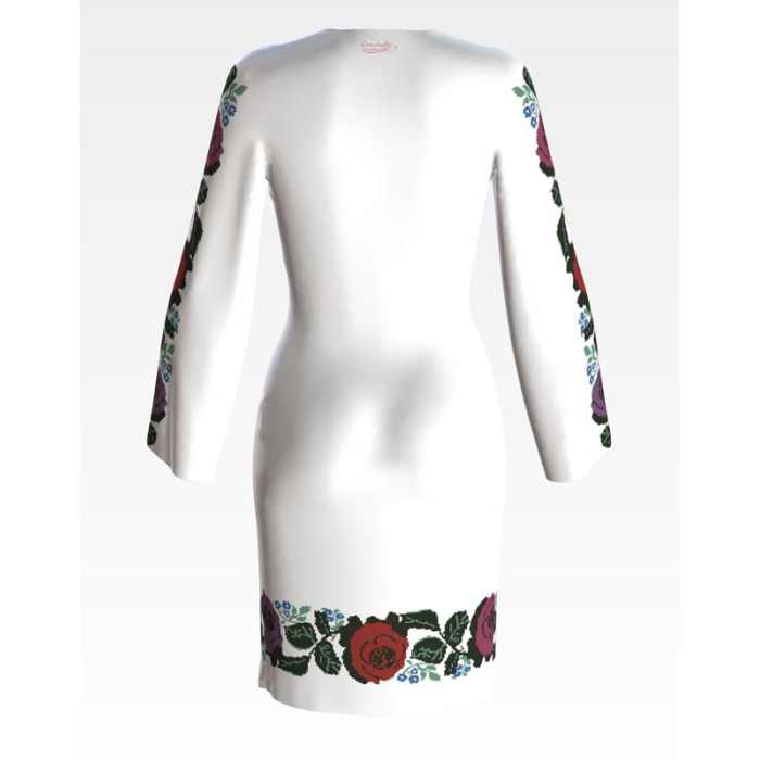 Заготовка для вишивки жіночої сукні Борщівська. Троянди призначена для часткової зашивки бісером або нитками. Схема надрукована на льоні білого кольору екологічно чистими стійкими фарбами, що не змиваються після прання. Відрізи розкроєні з урахуванням необхідних запасів для зручного вишивання та подальшого пошиття виробу.