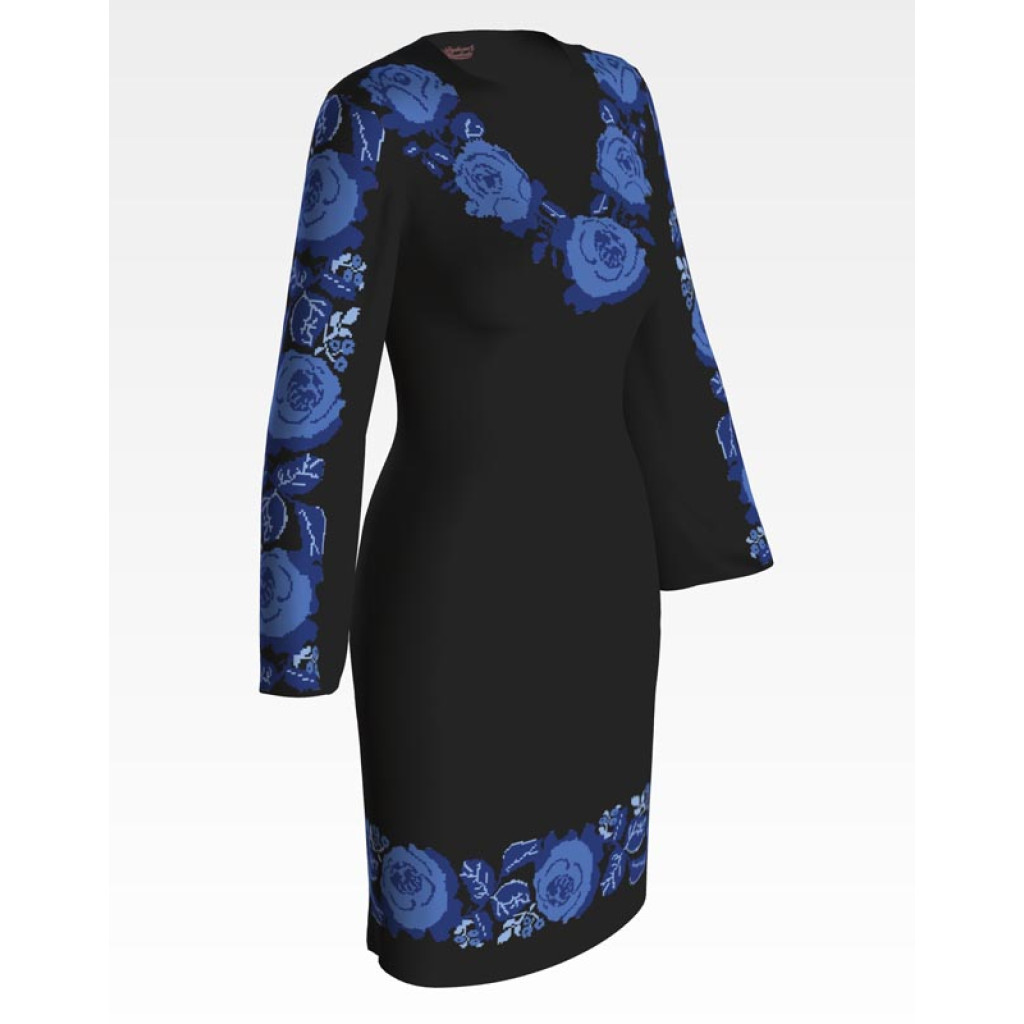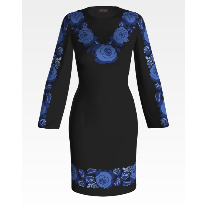 Заготовка для вишивки жіночої сукні Борщівська. Троянди призначена для часткової зашивки бісером або нитками. Схема надрукована на льоні чорного кольору екологічно чистими стійкими фарбами, що не змиваються після прання. Відрізи розкроєні з урахуванням необхідних запасів для зручного вишивання та подальшого пошиття виробу.