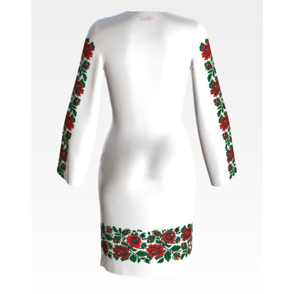 Заготовка для вишивки жіночої сукні Борщівська. Ніжні троянди призначена для часткової зашивки бісером або нитками. Схема надрукована на льоні білого кольору екологічно чистими стійкими фарбами, що не змиваються після прання. Відрізи розкроєні з урахуванням необхідних запасів для зручного вишивання та подальшого пошиття виробу.