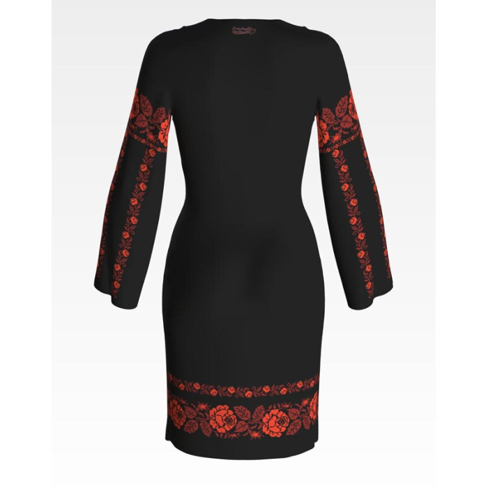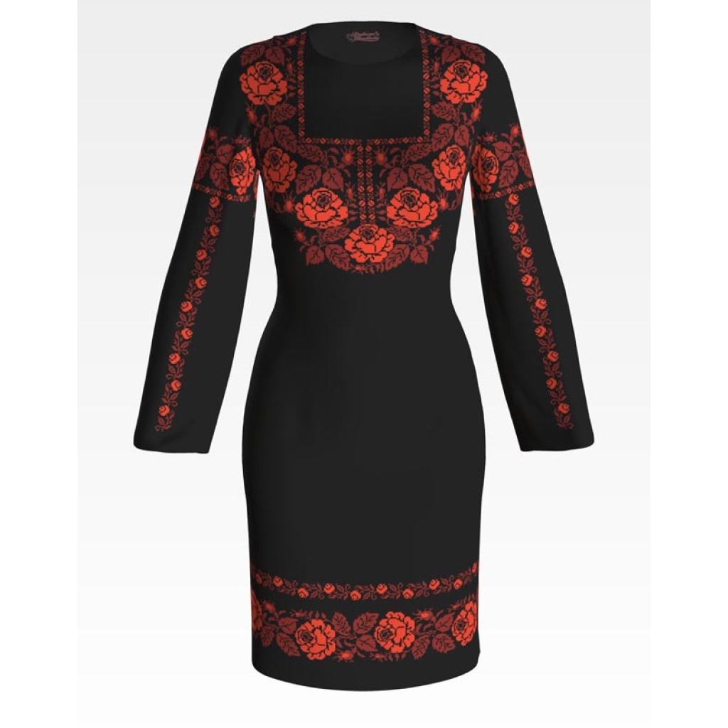 ПЛ071лЧнннн Барвиста вишиванка Заготовка для вишивки - Сукня жіноча Троянда р.42-54 льон, чорний