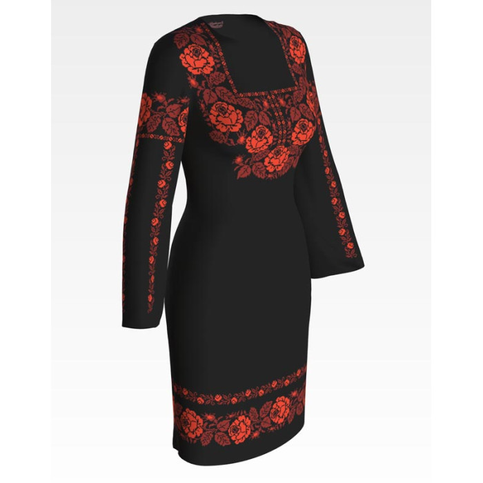 Заготовка для вишивки жіночої сукні Троянда призначена для часткової зашивки бісером або нитками. Схема надрукована на льоні чорного кольору екологічно чистими стійкими фарбами, що не змиваються після прання. Відрізи розкроєні з урахуванням необхідних запасів для зручного вишивання та подальшого пошиття виробу.