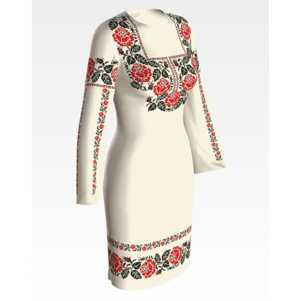 ПЛ071лМнннн Барвиста вишиванка Заготовка для вишивки - Сукня жіноча Троянда р.42-54 льон, бежевий