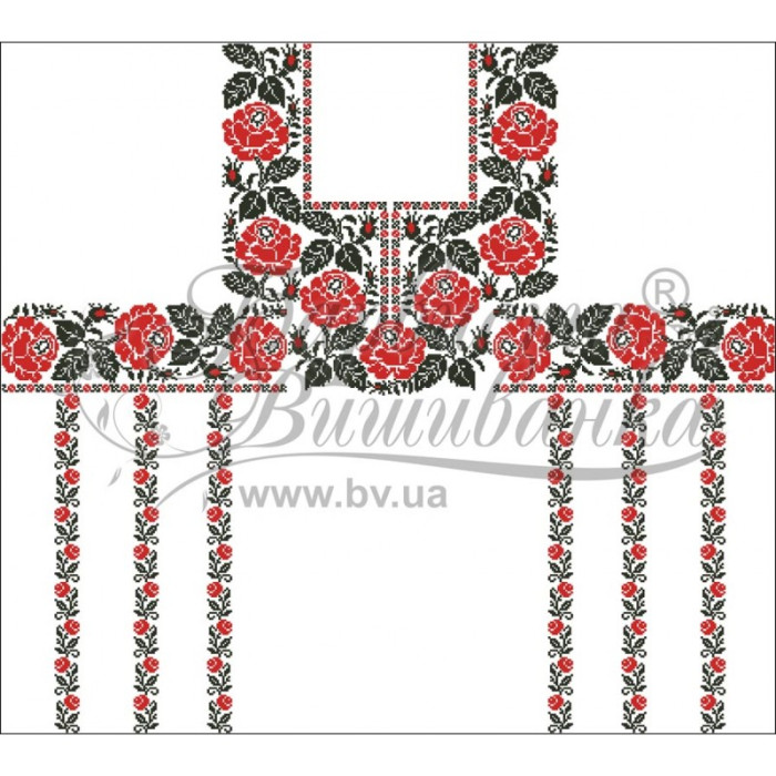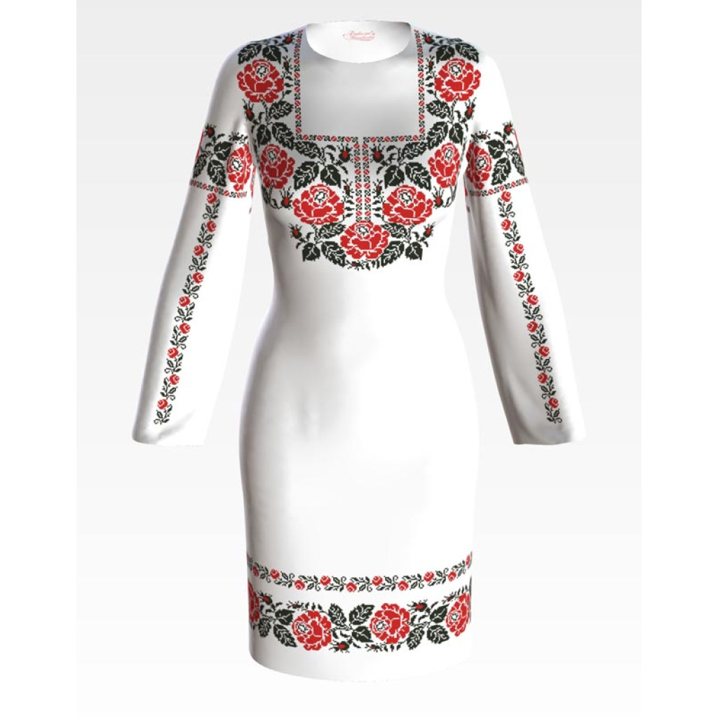 Заготовка для вишивки жіночої сукні Троянда призначена для часткової зашивки бісером або нитками. Схема надрукована на білому габардині екологічно чистими стійкими фарбами, що не змиваються після прання. Відрізи розкроєні з урахуванням необхідних запасів для зручного вишивання та подальшого пошиття виробу.