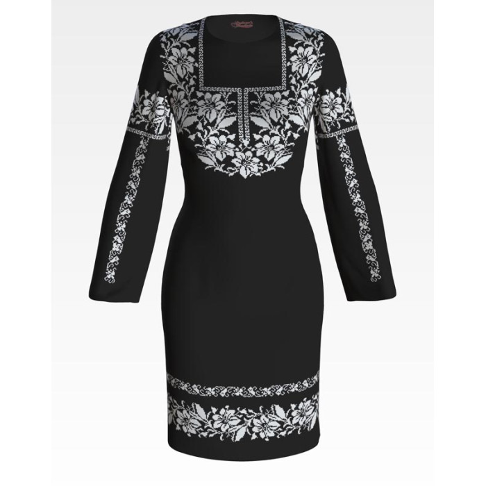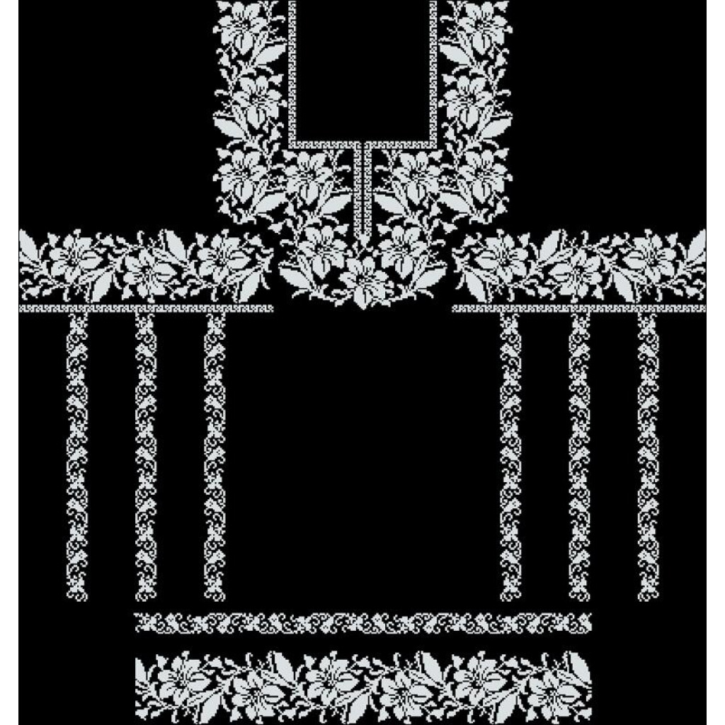 Заготовка для вишивки жіночої сукні Лілея призначена для часткової зашивки бісером або нитками. Схема надрукована на льоні чорного кольору екологічно чистими стійкими фарбами, що не змиваються після прання. Відрізи розкроєні з урахуванням необхідних запасів для зручного вишивання та подальшого пошиття виробу.