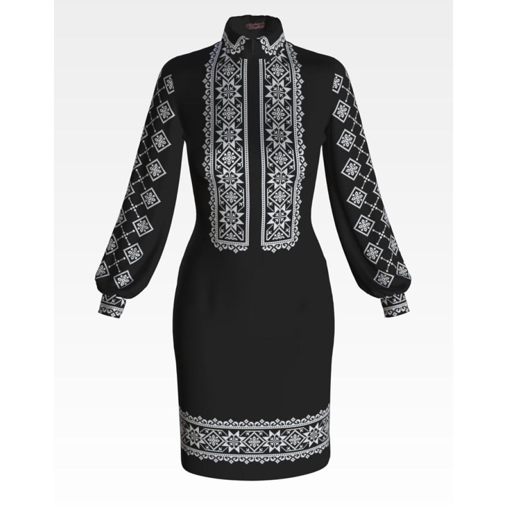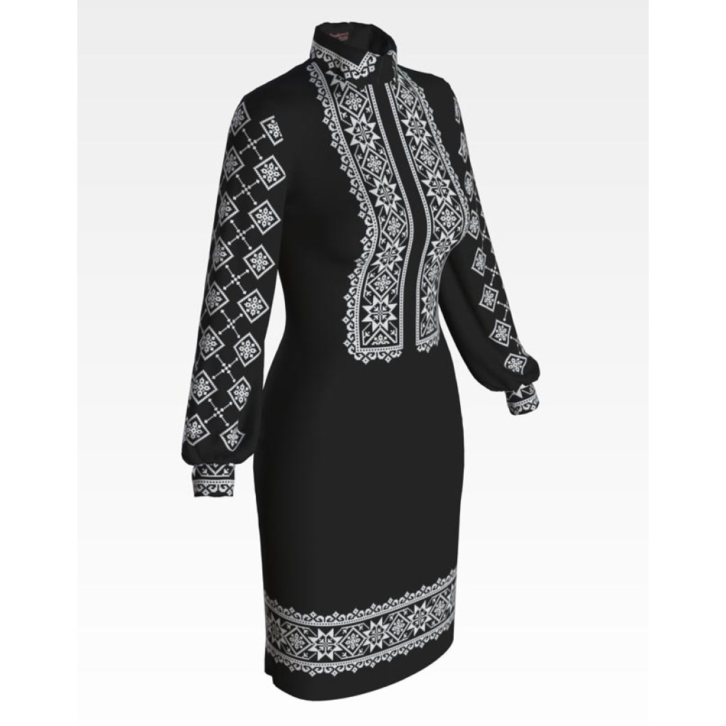 Заготовка для вишивки жіночої сукні Стильна призначена для часткової зашивки бісером або нитками. Схема надрукована на льоні чорного кольору екологічно чистими стійкими фарбами, що не змиваються після прання. Відрізи розкроєні з урахуванням необхідних запасів для зручного вишивання та подальшого пошиття виробу.