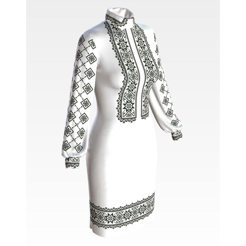 Заготовка для вишивки жіночої сукні Стильна призначена для часткової зашивки бісером або нитками. Схема надрукована на білому габардині екологічно чистими стійкими фарбами, що не змиваються після прання. Відрізи розкроєні з урахуванням необхідних запасів для зручного вишивання та подальшого пошиття виробу.