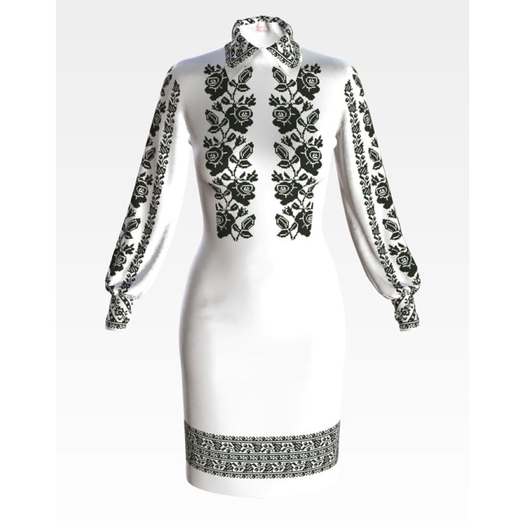 ПЛ081пБнннн Барвиста вишиванка Заготовка для вишивки - Сукня жіноча Троянди монохром р.42-54 габардин, білий