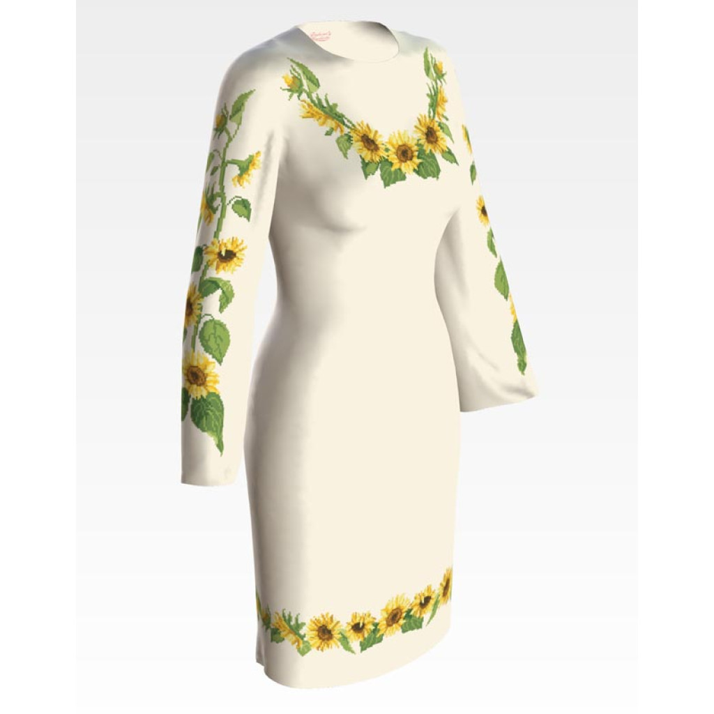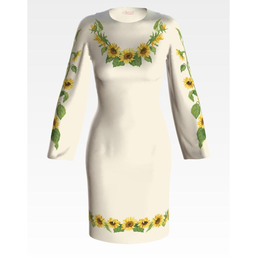 ПЛ084кМнннн Барвиста вишиванка Заготовка для вишивки - Сукня жіноча Соняшники р.42-54 атлас, бежевий