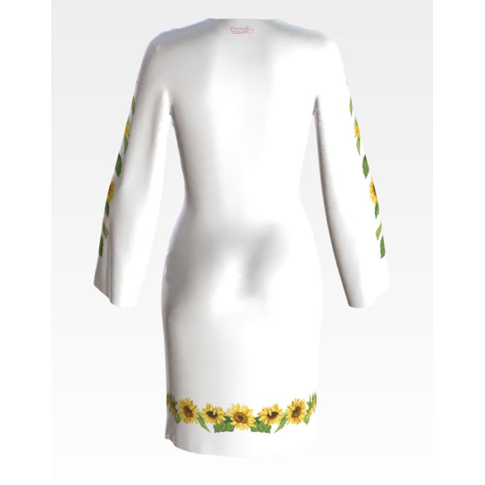 Заготовка для вишивки жіночої сукні Соняшники призначена для часткової зашивки бісером або нитками. Схема надрукована на льоні білого кольору екологічно чистими стійкими фарбами, що не змиваються після прання. Відрізи розкроєні з урахуванням необхідних запасів для зручного вишивання та подальшого пошиття виробу.