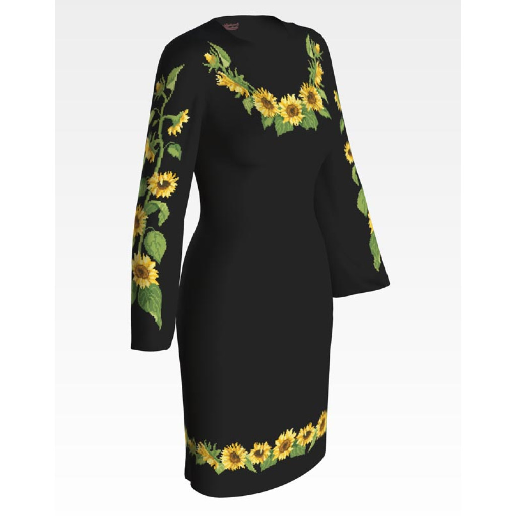 ПЛ084лЧнннн Барвиста вишиванка Заготовка для вишивки - Сукня жіноча Соняшники р.42-54 льон, чорний
