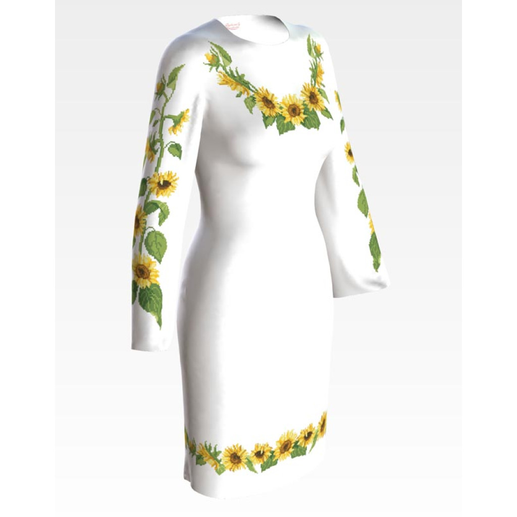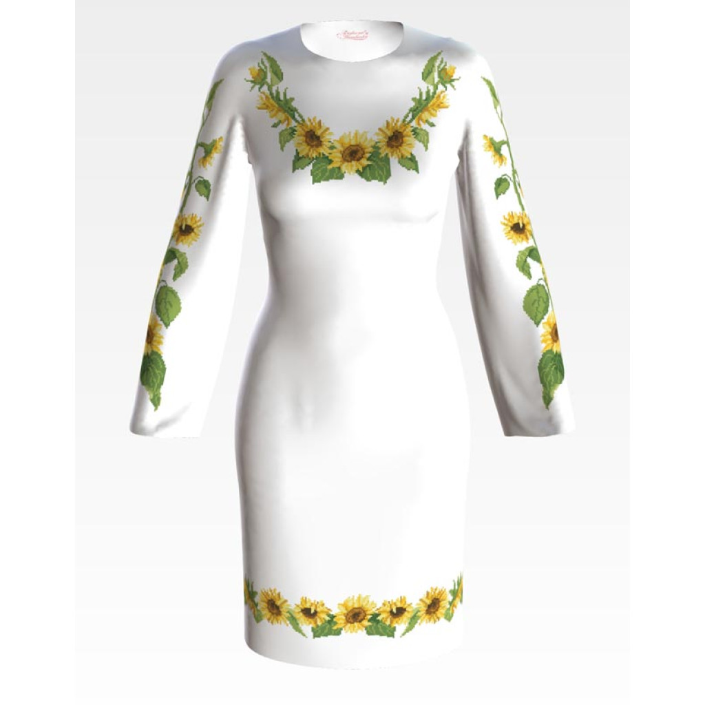 ПЛ084пБнннн Барвиста вишиванка Заготовка для вишивки - Сукня жіноча Соняшники р.42-54 габардин, білий