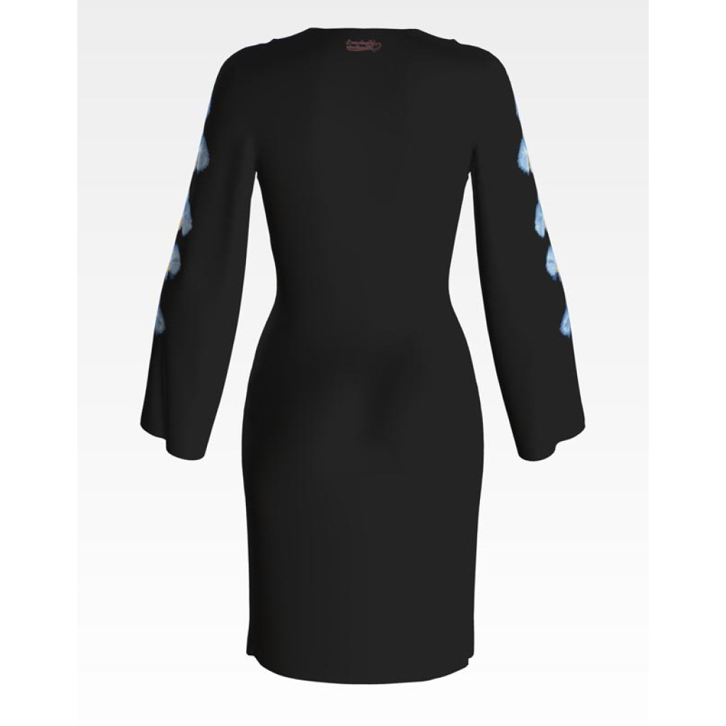 ПЛ085лЧнннн Барвиста вишиванка Заготовка для вишивки - Сукня жіноча Блакитні орхідеї р.42-54 льон, чорний