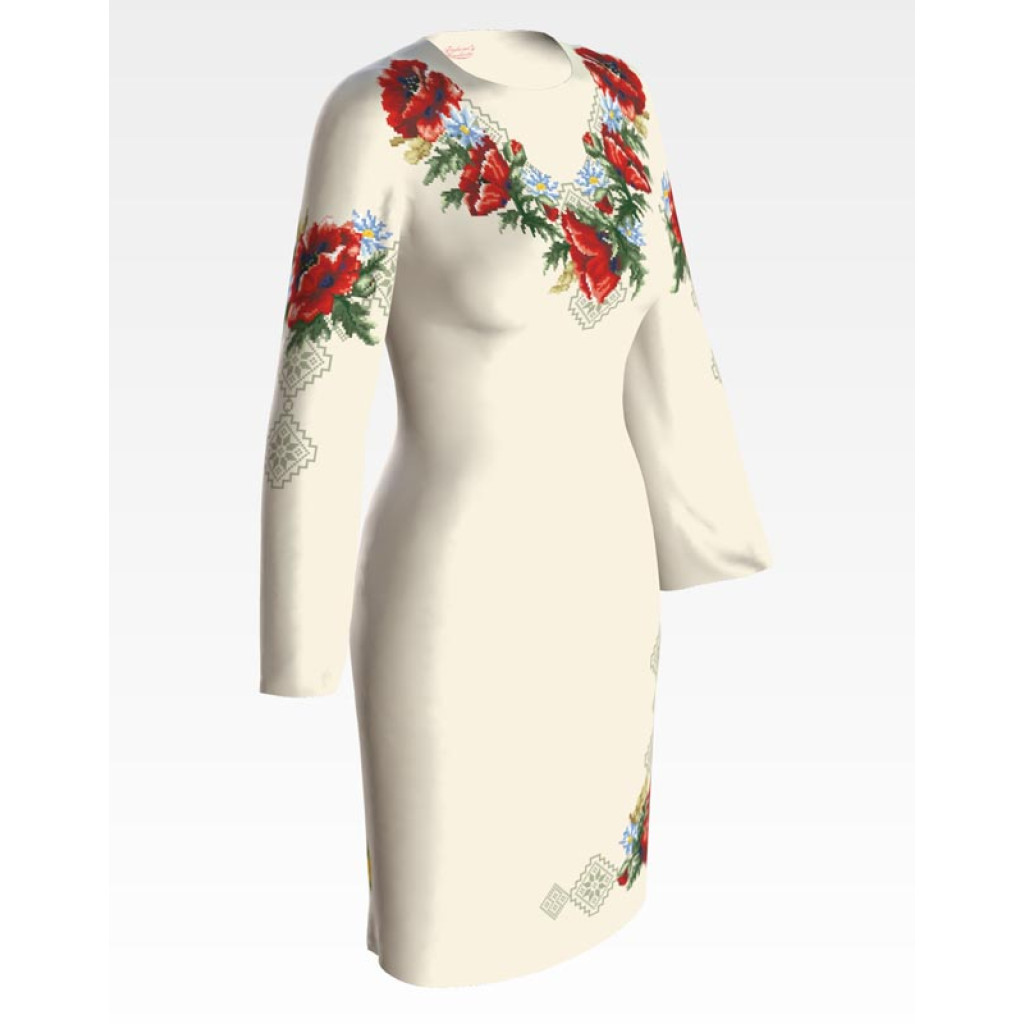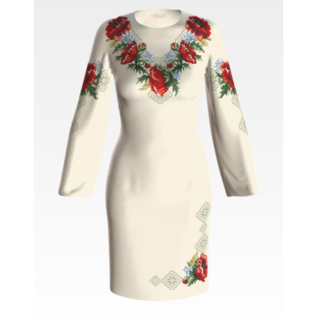 ПЛ086кМнннн Барвиста вишиванка Заготовка для вишивки - Сукня жіноча Маковий розмай р.42-54 атлас, бежевий