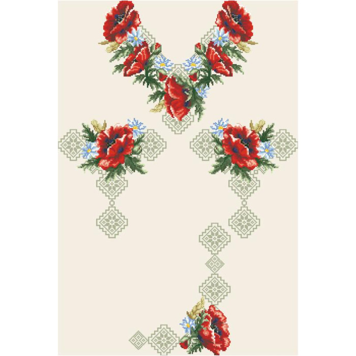 Заготовка для вишивки жіночої сукні Маковий розмай призначена для часткової зашивки бісером або нитками. Схема надрукована на атлас-котоні бежевого кольору екологічно чистими стійкими фарбами, що не змиваються після прання. Відрізи розкроєні з урахуванням необхідних запасів для зручного вишивання та подальшого пошиття виробу.