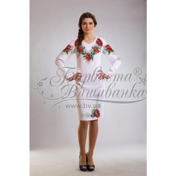 ПЛ086лБнннн Барвиста вишиванка Заготовка для вишивки - Сукня жіноча Маковий розмай р.42-54 льон, білий