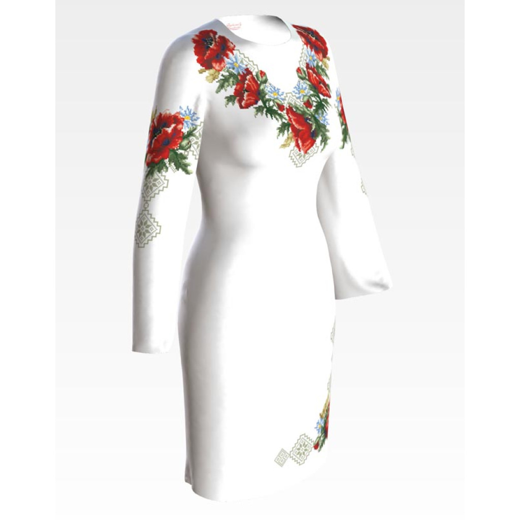 Заготовка для вишивки жіночої сукні Маковий розмай призначена для часткової зашивки бісером або нитками. Схема надрукована на білому габардині екологічно чистими стійкими фарбами, що не змиваються після прання. Відрізи розкроєні з урахуванням необхідних запасів для зручного вишивання та подальшого пошиття виробу.