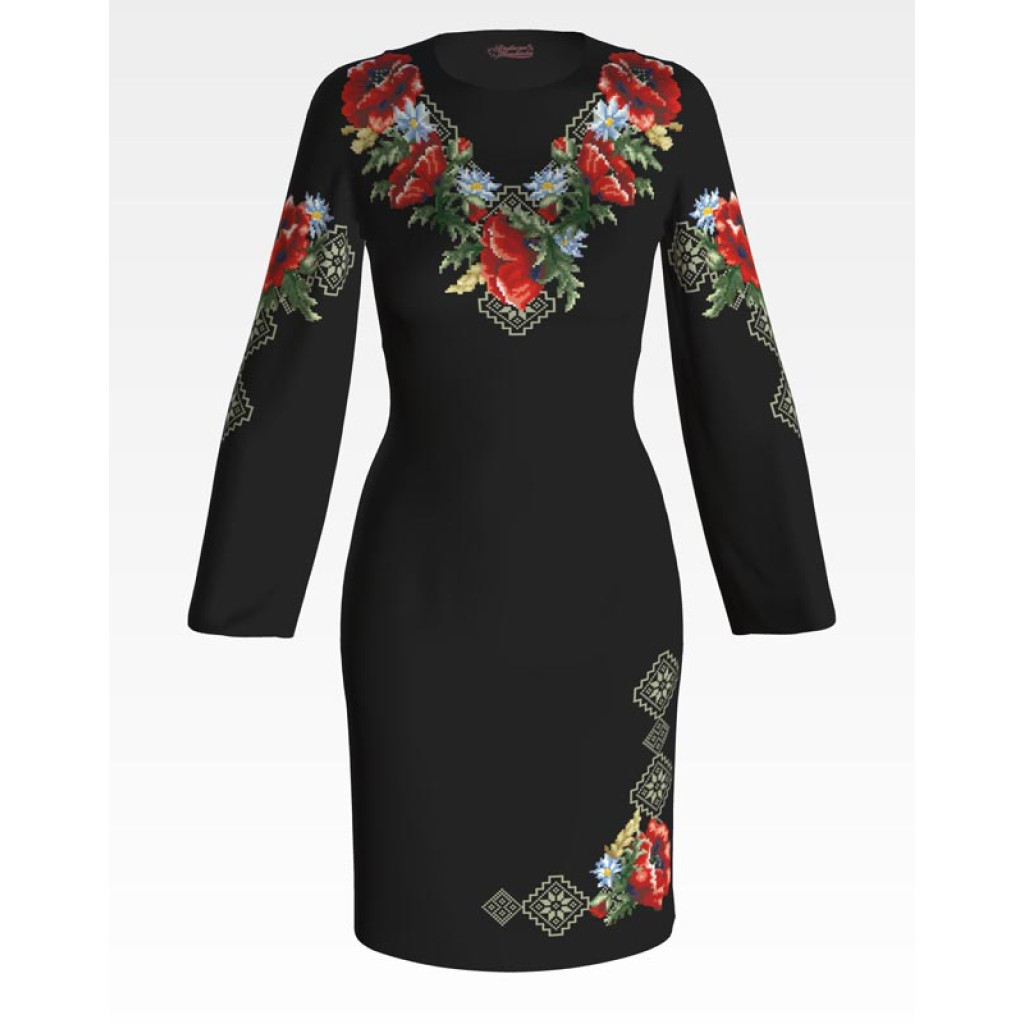 ПЛ086шЧнннн Барвиста вишиванка Заготовка для вишивки - Сукня жіноча Маковий розмай р.42-54 шовк, чорний