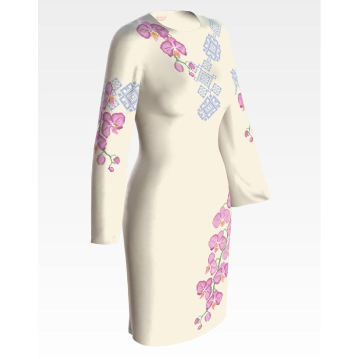 Заготовка для вишивки жіночої сукні Ніжні орхідеї призначена для часткової зашивки бісером або нитками. Схема надрукована на домотканому полотні бежевого кольору екологічно чистими стійкими фарбами, що не змиваються після прання. Відрізи розкроєні з урахуванням необхідних запасів для зручного вишивання та подальшого пошиття виробу.
