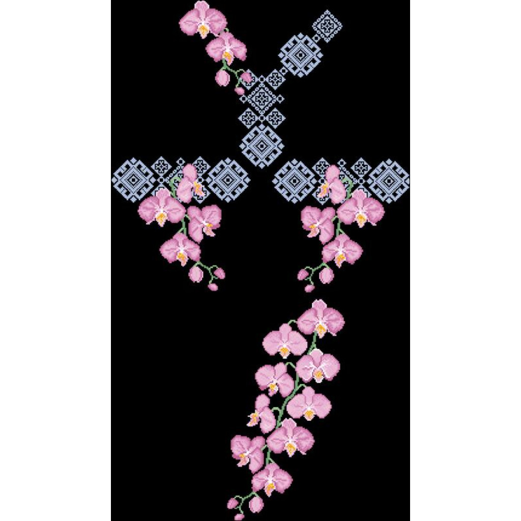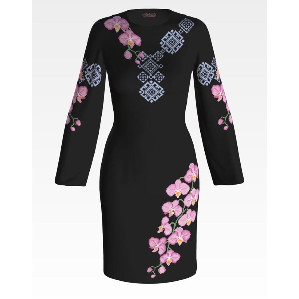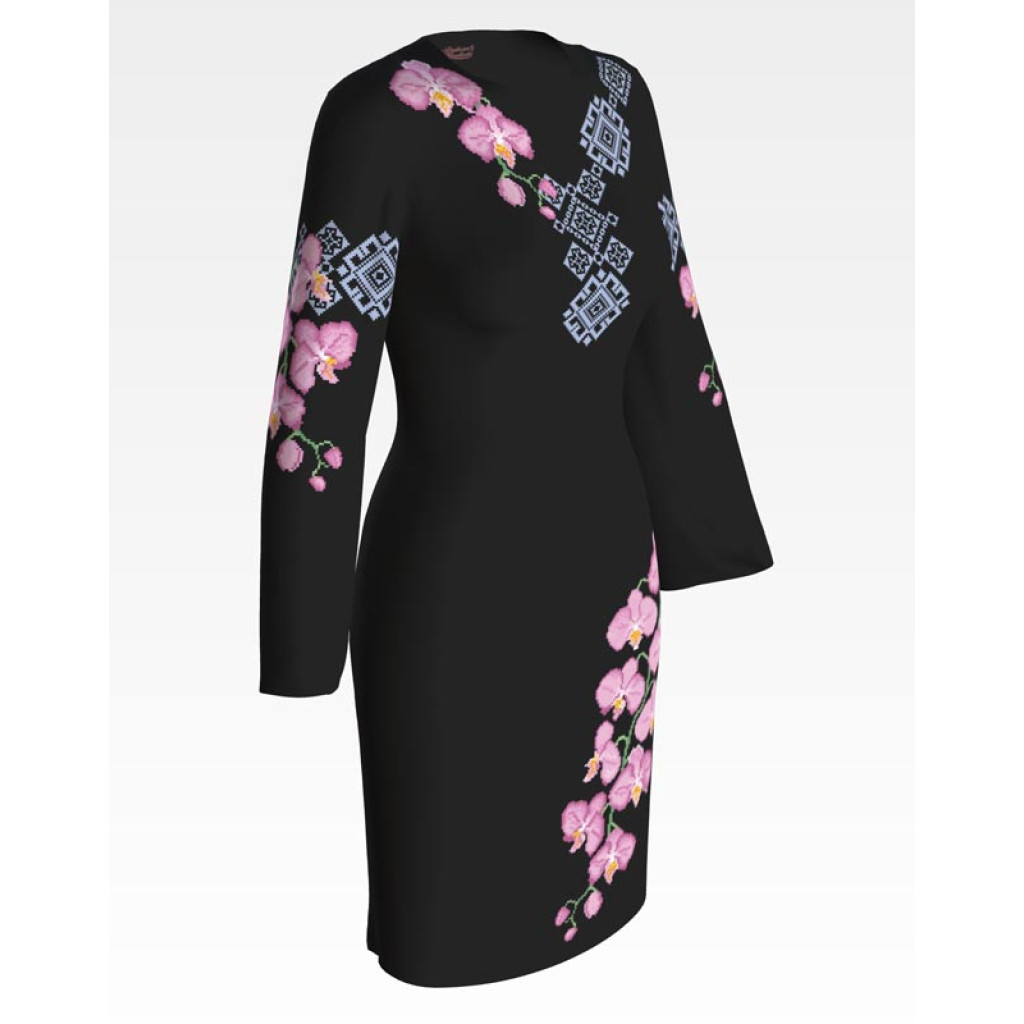 Заготовка для вишивки жіночої сукні Ніжні орхідеї призначена для часткової зашивки бісером або нитками. Схема надрукована на льоні чорного кольору екологічно чистими стійкими фарбами, що не змиваються після прання. Відрізи розкроєні з урахуванням необхідних запасів для зручного вишивання та подальшого пошиття виробу.