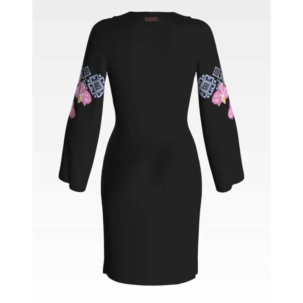ПЛ087лЧнннн Барвиста вишиванка Заготовка для вишивки - Сукня жіноча Ніжні орхідеї р.42-54 льон, чорний