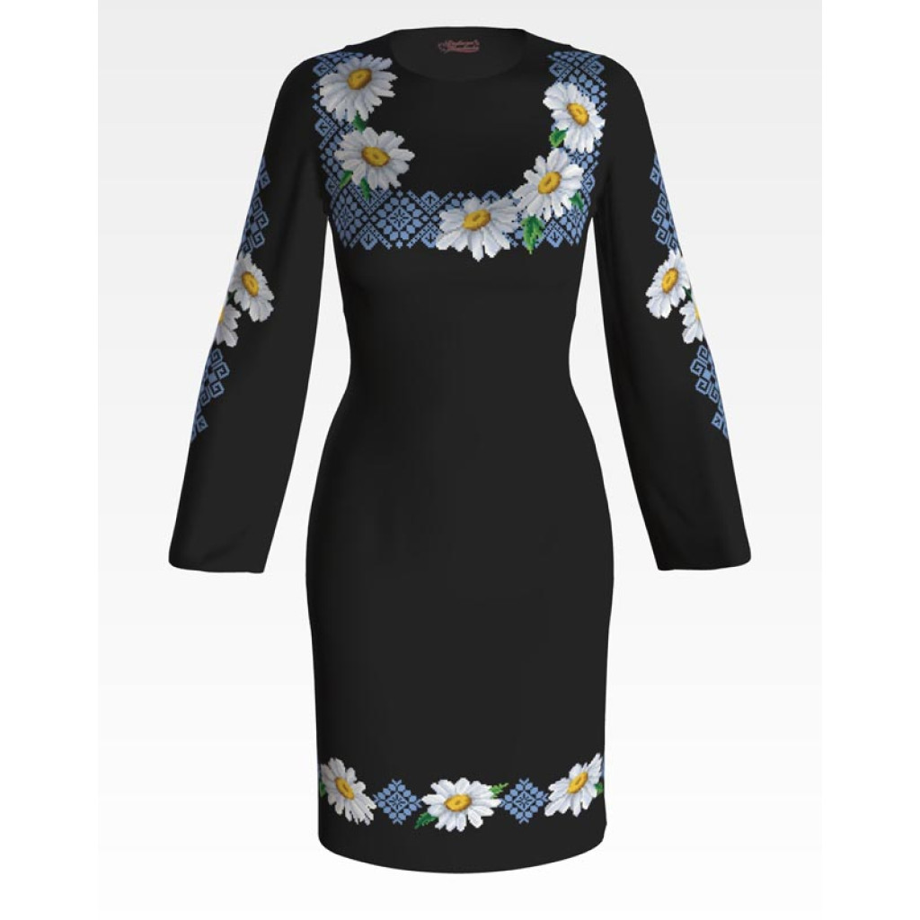 ПЛ088лЧнннн Барвиста вишиванка Заготовка для вишивки - Сукня жіноча Ніжні ромашки р.42-54 льон, чорний