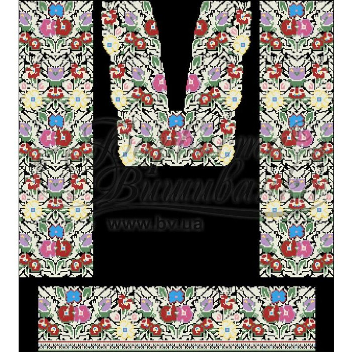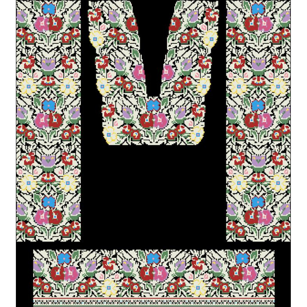 Заготовка для вишивки жіночої сукні Борщівська сучасна призначена для часткової зашивки бісером або нитками. Схема надрукована на льоні чорного кольору екологічно чистими стійкими фарбами, що не змиваються після прання. Відрізи розкроєні з урахуванням необхідних запасів для зручного вишивання та подальшого пошиття виробу.