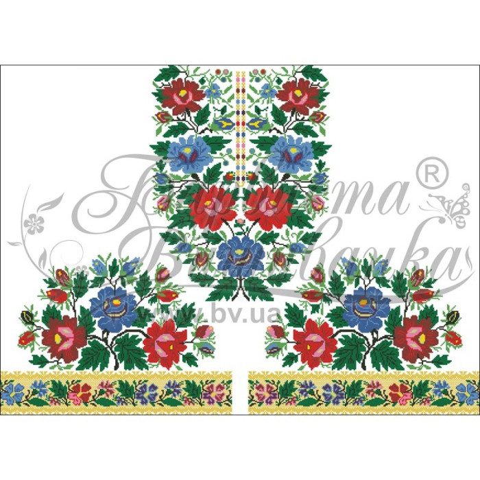 Заготовка для вишивки жіночої сукні Буковинська призначена для часткової зашивки бісером або нитками. Схема надрукована на білому габардині екологічно чистими стійкими фарбами, що не змиваються після прання. Відрізи розкроєні з урахуванням необхідних запасів для зручного вишивання та подальшого пошиття виробу.