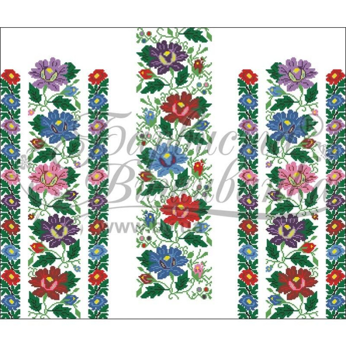 Заготовка для вишивки жіночої сукні Буковинська сучасна призначена для часткової зашивки бісером або нитками. Схема надрукована на білому габардині екологічно чистими стійкими фарбами, що не змиваються після прання. Відрізи розкроєні з урахуванням необхідних запасів для зручного вишивання та подальшого пошиття виробу.