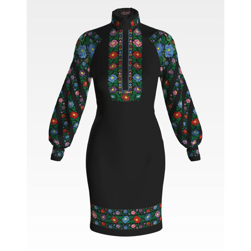 ПЛ095шЧнннн Барвиста вишиванка Заготовка для вишивки - Сукня жіноча Буковинська квітка р.42-54 шовк, чорний