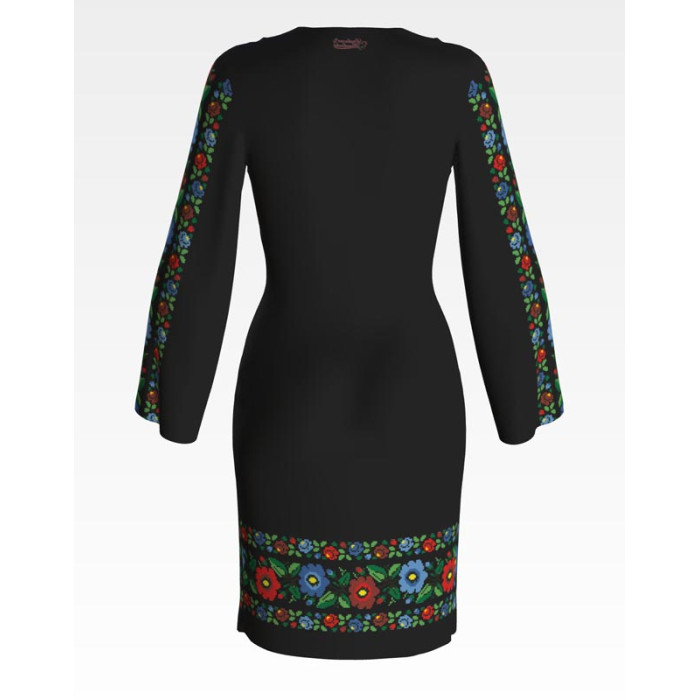 Заготовка для вишивки жіночої сукні Буковинська сучасна призначена для часткової зашивки бісером або нитками. Схема надрукована на льоні чорного кольору екологічно чистими стійкими фарбами, що не змиваються після прання. Відрізи розкроєні з урахуванням необхідних запасів для зручного вишивання та подальшого пошиття виробу.