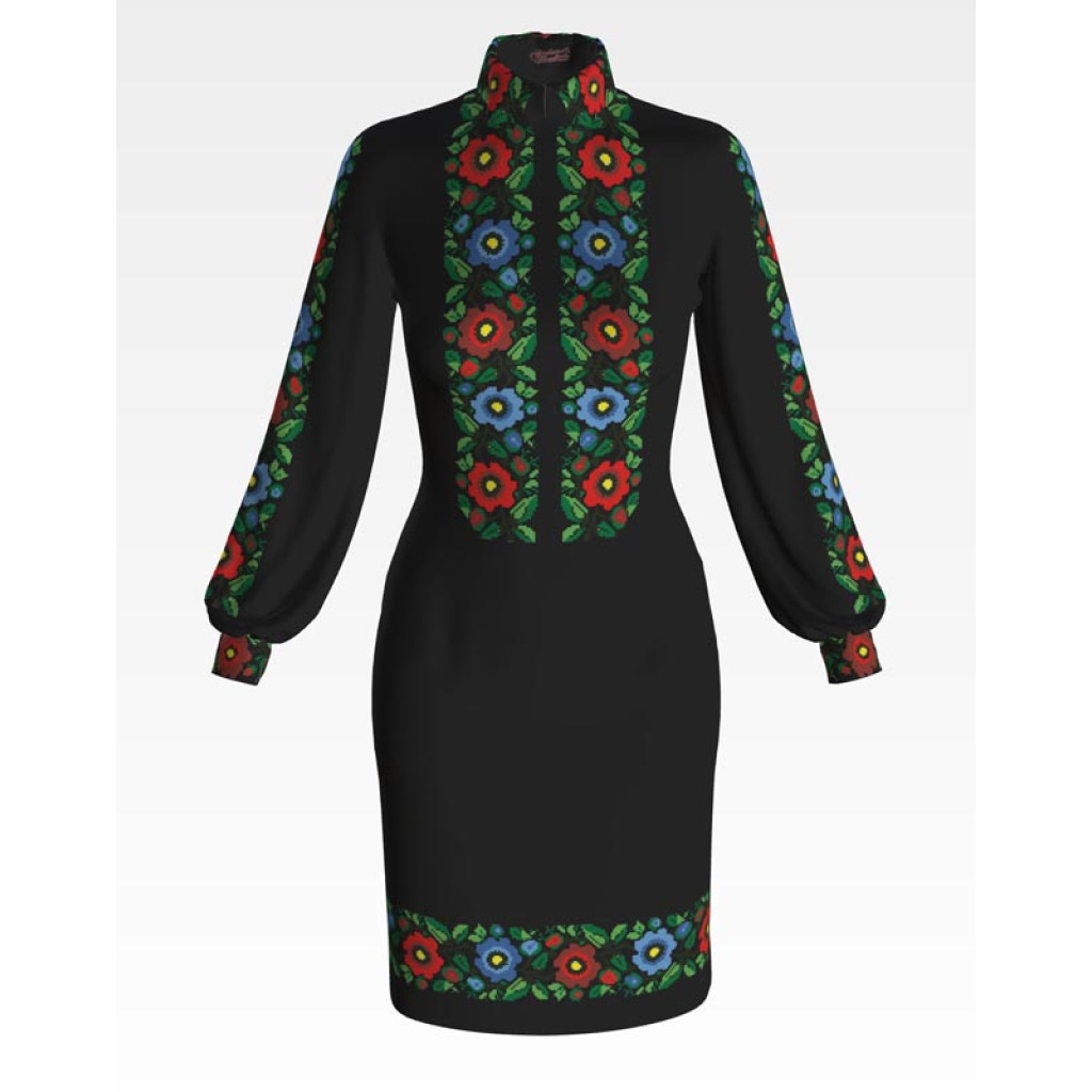 ПЛ098шЧнннн Барвиста вишиванка Заготовка для вишивки - Сукня жіноча Буковинська сучасна р.42-54 шовк, чорний