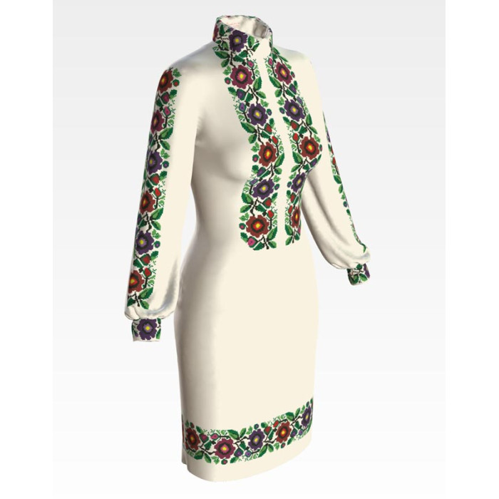 Заготовка для вишивки жіночої сукні Буковинська сучасна призначена для часткової зашивки бісером або нитками. Схема надрукована на атлас-котоні бежевого кольору екологічно чистими стійкими фарбами, що не змиваються після прання. Відрізи розкроєні з урахуванням необхідних запасів для зручного вишивання та подальшого пошиття виробу.