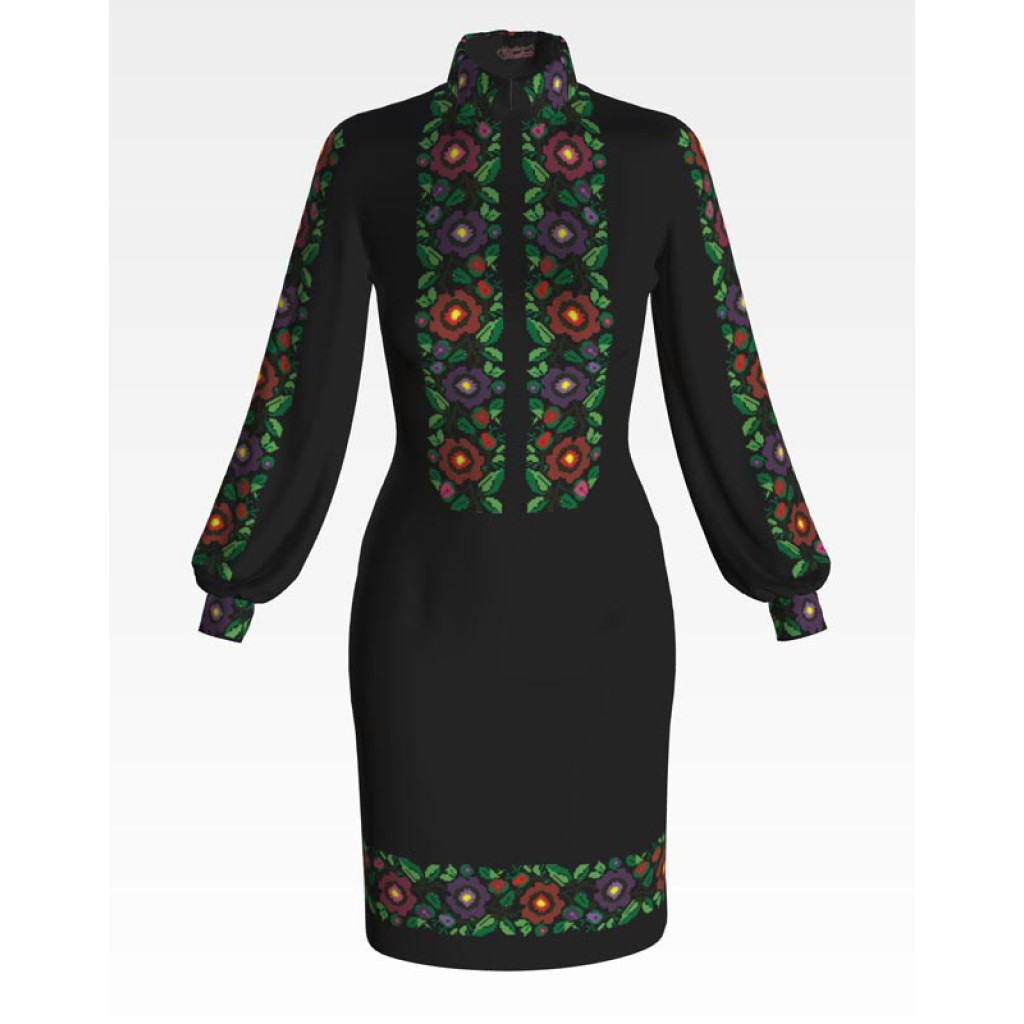 Заготовка для вишивки жіночої сукні Буковинська сучасна призначена для часткової зашивки бісером або нитками. Схема надрукована на льоні чорного кольору екологічно чистими стійкими фарбами, що не змиваються після прання. Відрізи розкроєні з урахуванням необхідних запасів для зручного вишивання та подальшого пошиття виробу.