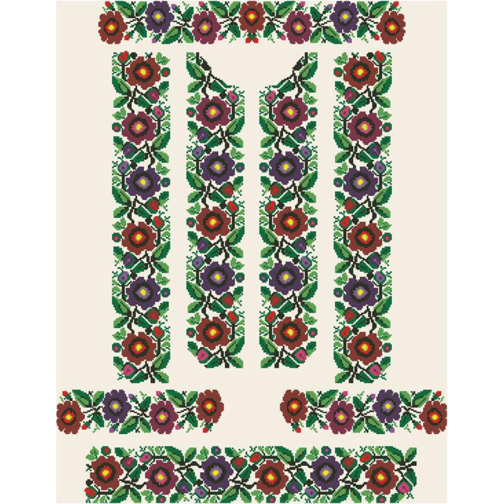 Заготовка для вишивки жіночої сукні Буковинська сучасна призначена для часткової зашивки бісером або нитками. Схема надрукована на льоні бежевого кольору екологічно чистими стійкими фарбами, що не змиваються після прання. Відрізи розкроєні з урахуванням необхідних запасів для зручного вишивання та подальшого пошиття виробу.