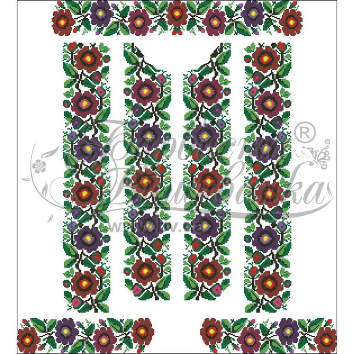 Заготовка для вишивки жіночої сукні Буковинська сучасна призначена для часткової зашивки бісером або нитками. Схема надрукована на білому габардині екологічно чистими стійкими фарбами, що не змиваються після прання. Відрізи розкроєні з урахуванням необхідних запасів для зручного вишивання та подальшого пошиття виробу.