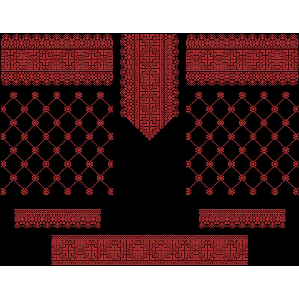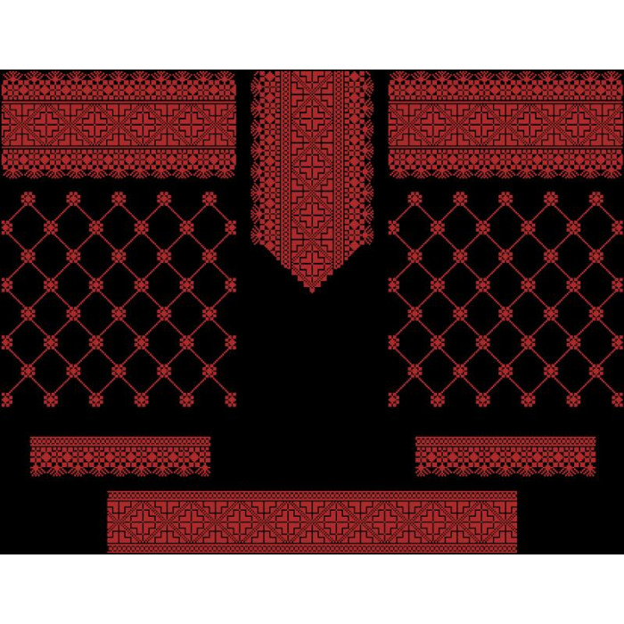 Заготовка для вишивки жіночої сукні Полісся призначена для часткової зашивки бісером або нитками. Схема надрукована на шовковій тканині чорного кольору екологічно чистими стійкими фарбами, що не змиваються після прання. Відрізи розкроєні з урахуванням запасів для зручного вишивання та подальшого пошиття виробу.