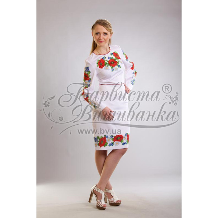 Заготовка для вишивки жіночої сукні Маки, ромашки, незабудки призначена для часткової зашивки бісером або нитками. Схема надрукована на льоні білого кольору екологічно чистими стійкими фарбами, що не змиваються після прання. Відрізи розкроєні з урахуванням необхідних запасів для зручного вишивання та подальшого пошиття виробу.