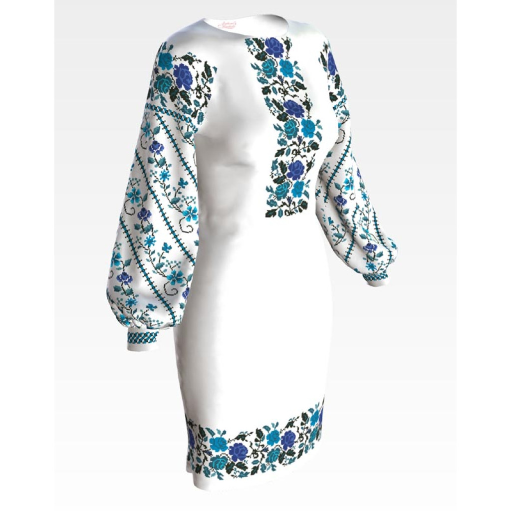 ПЛ111пБнннн Барвиста вишиванка Заготовка для вишивки - Сукня жіноча Лазурова р.42-54 габардин, білий