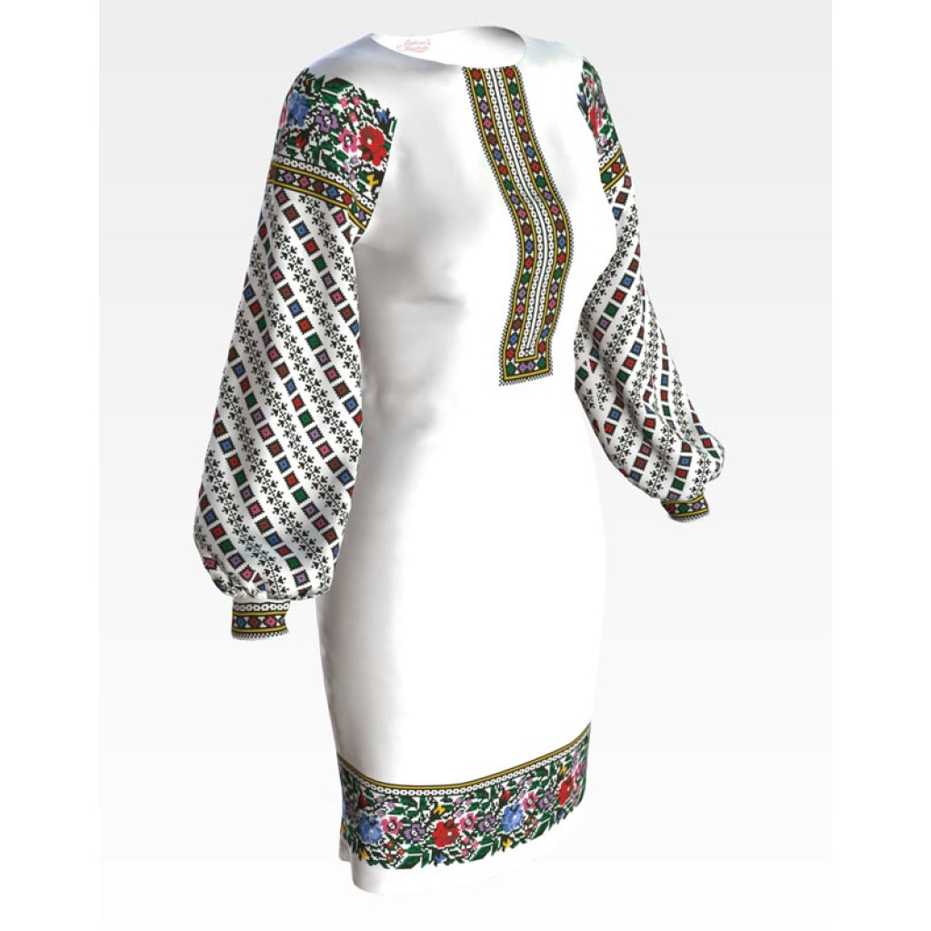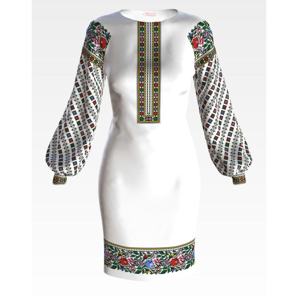 ПЛ114пБнннн Барвиста вишиванка Заготовка для вишивки - Сукня жіноча Борщівські візерунки р.42-54 габардин, білий